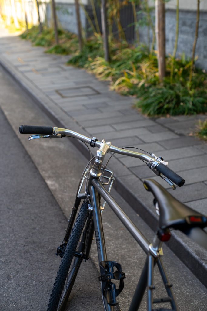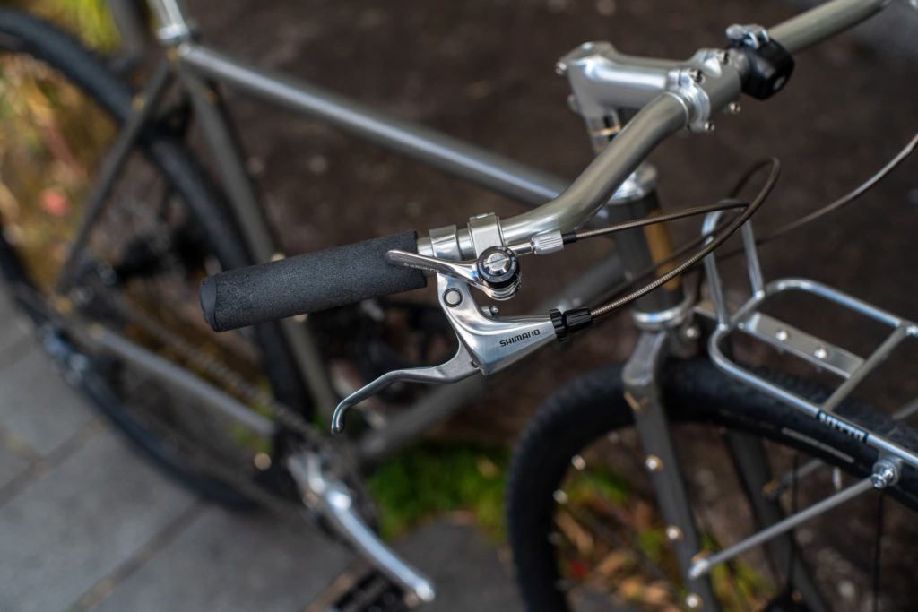 駆動系などをベーシックなもので構成し、フロントラックをポイントとして仕上げたコミューターですが、グラベルバイククオリティのフレームなので、このままでももちろん、少しづつ駆動系などをカスタムしていろんな変化に対応可能です。