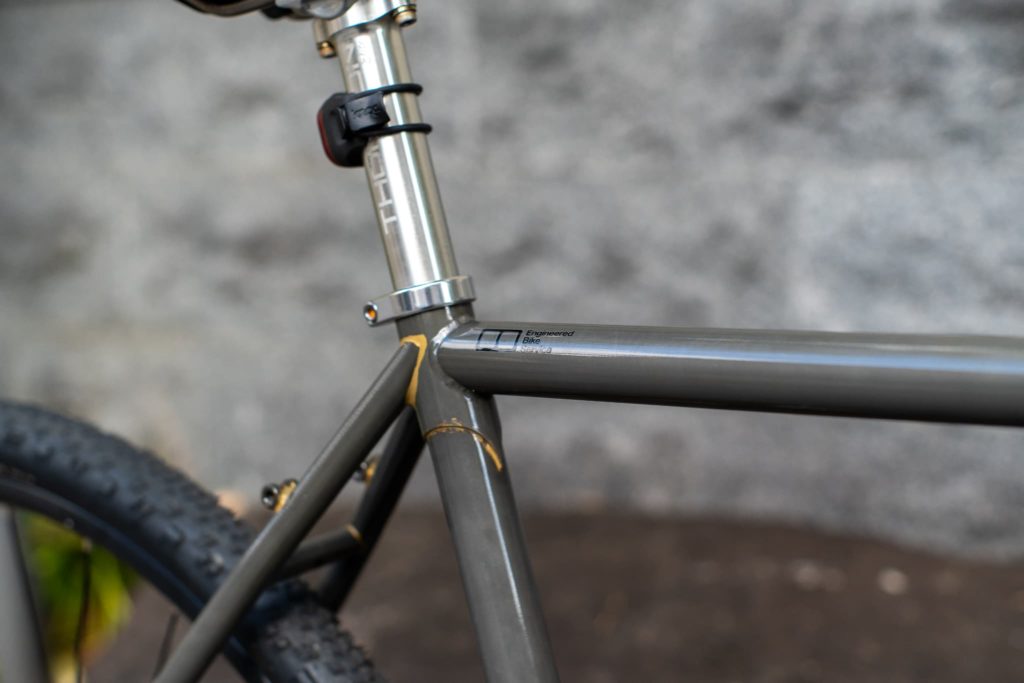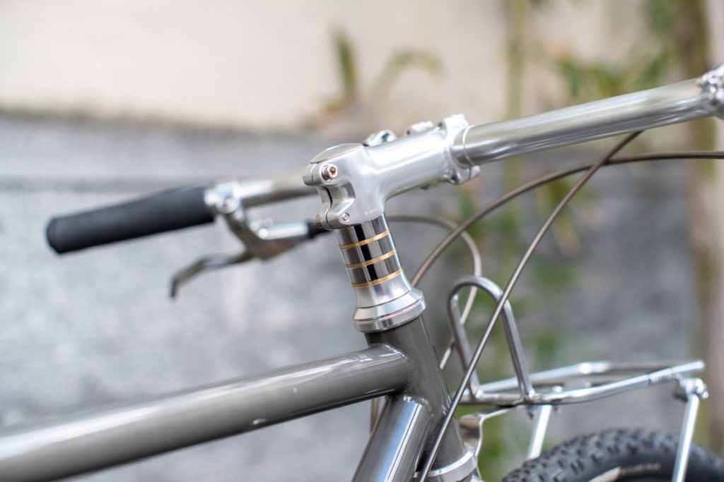 パーカライジング防錆加工で得られるクロモリ素地のなんとも言えない無骨なグレーと溶接真鍮色。
