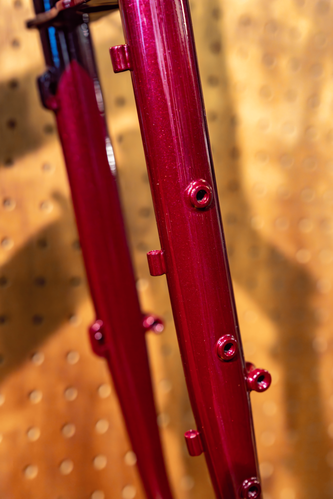 フレームの内装と違って、クロモリフォークはかなり細身に作られていて、またその細さが魅力でもあります。
