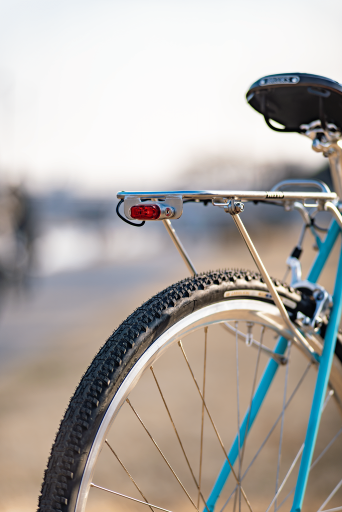 上記の画像はリアラック取り付けのリアダイナモライトですが、もちろんシートポストにも取り付けが可能なので、お好きなスタイルでOKです。