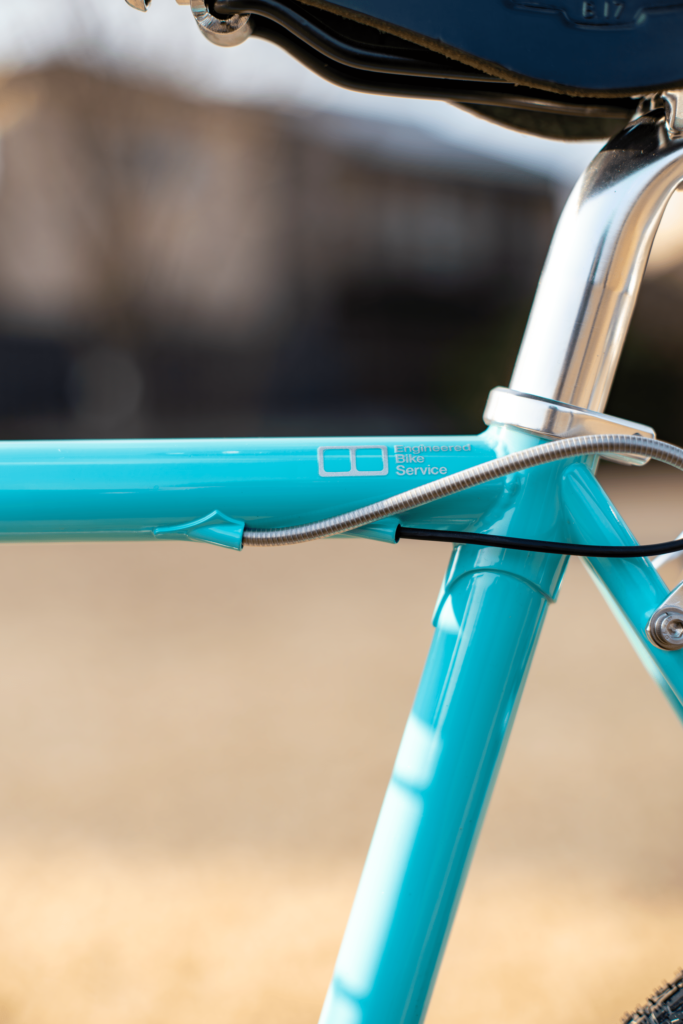 ってことで、その車種によっては、という中で最もわかりやすい現行EBS KamogawaやEBS FLOATなどのシリーズ、トップチューブにワイヤー内装を標準としている車種の場合、二連で内装することで解決しました。