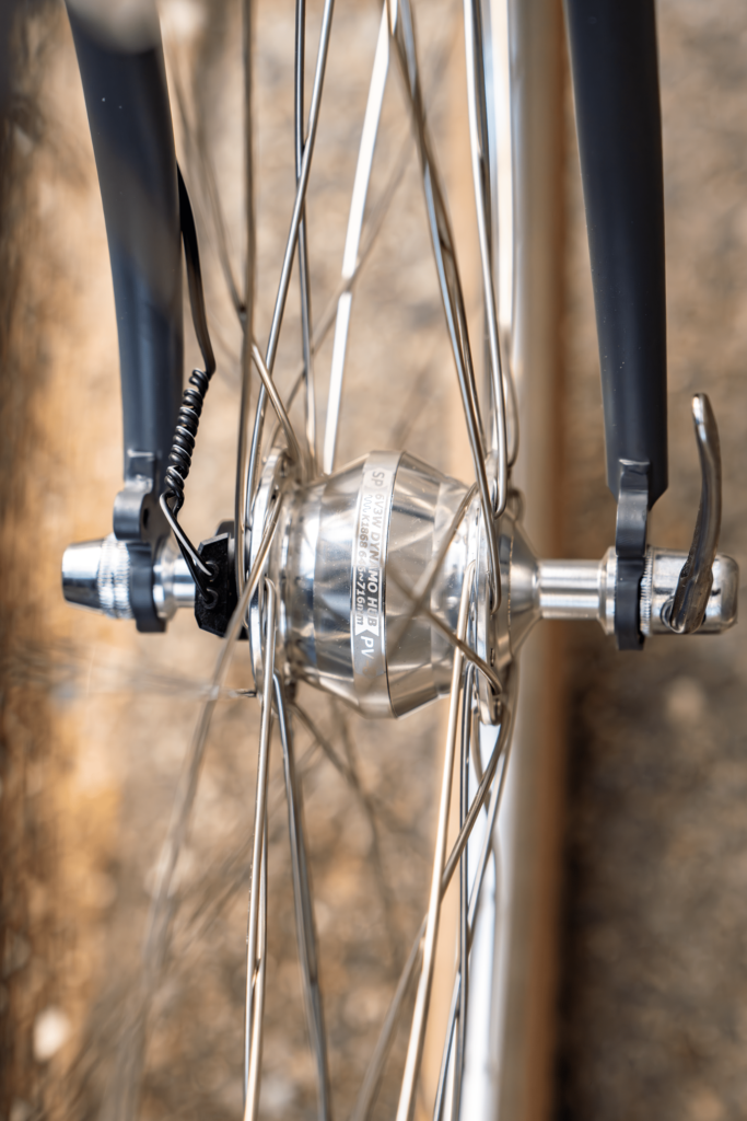 これは配線を通しているだけなので、ダイナモハブに繋ぐ時のキャップを外すだけで通し直せるし、現行のダイナモライトの純正配線をライトマウント側で巻けばしっかり使い切れるくらいの長さになるので、整備性爆上がりでいい感じです。