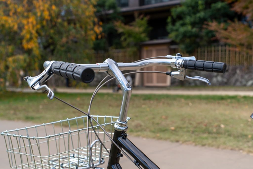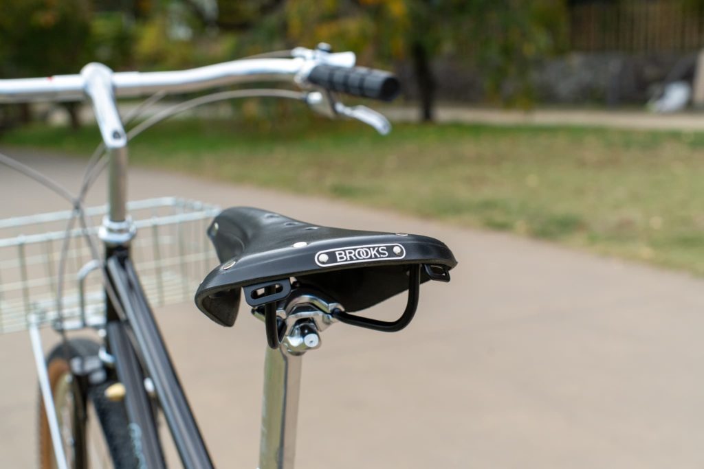 シルバーパーツにブラックレザーでグッと締め、NITTOフロントラックに小型のライトと街乗りに抜け目なしな1台になってます。