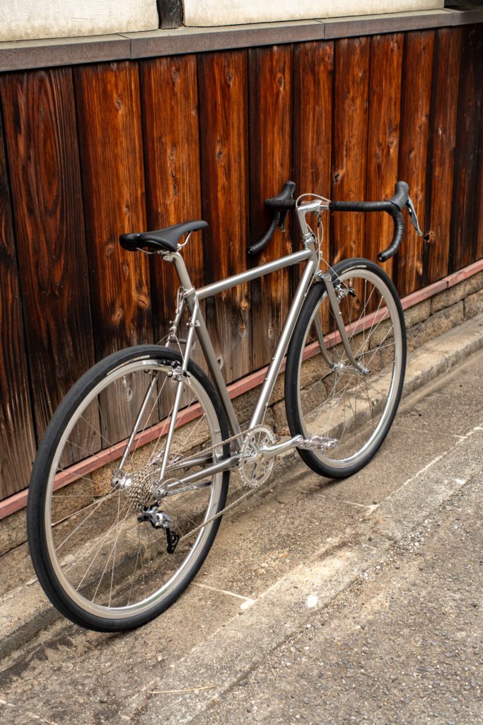 かつ全体的にシルバーパーツを使用してクラシックに、ラック取り付けでちょっとした荷物を載せたり、バイクパッキング的な発想で旅をするのも、フルラック、フルフェンダーでランドナー的思想で組むのもバッチリですし、ロードエンドなのでシングルで組むこともでき、乗り出してから長く使う中でかなり変化に強い1台。