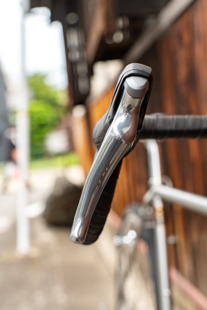 パーツ構成としては、もう絶版になってしまった機械式11Speed、105のシルバーレバーが新品で手に入ったので、オールシルバー105で構成できる最後の1台。
