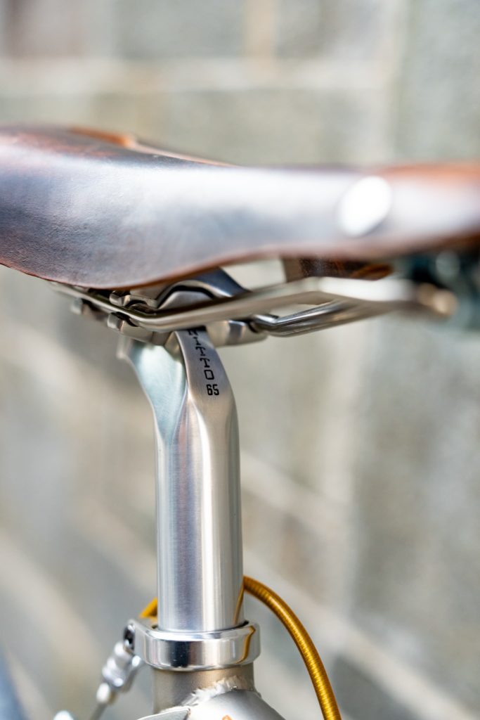 そんなふわっと広がる感じのカラーに上質なレザーサドルはアメリカ性のSelle Anatomica。